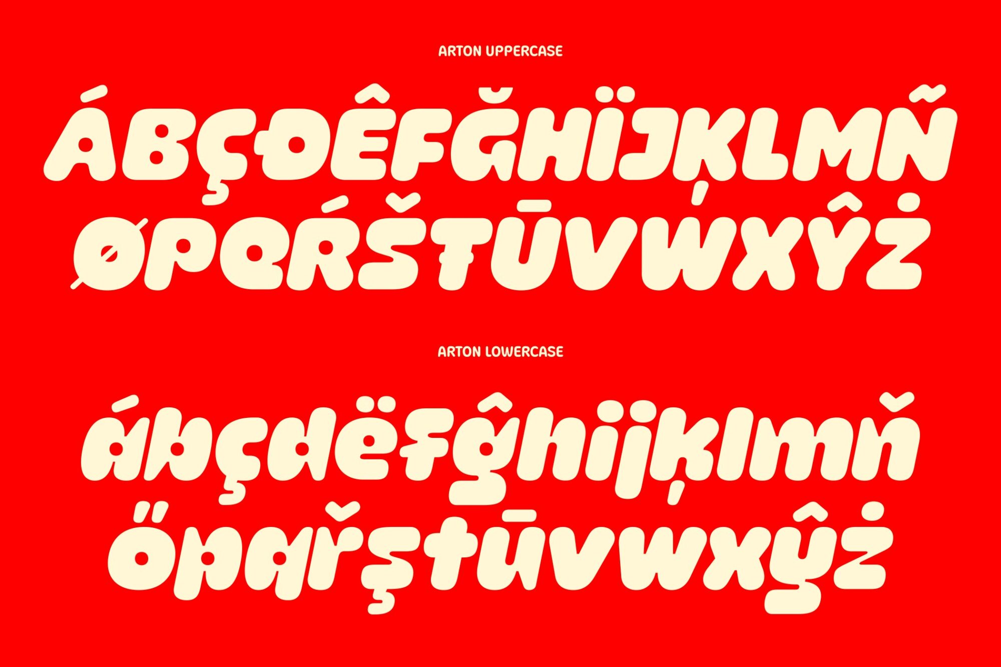 Perfect for branding, logos, posters, packaging, kids products, and social media graphics, Arton adds a cheerful and energetic vibe to any design. The font includes uppercase, lowercase, numerals, punctuation, and multilingual support, making it versatile for many creative projects.